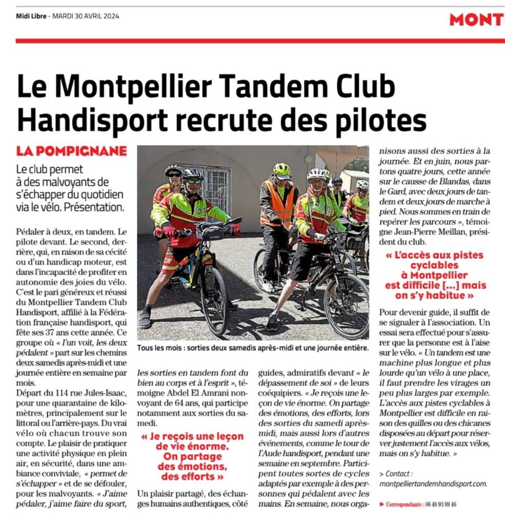 Midi-Libre – Talking Tandems – octobre 2018
